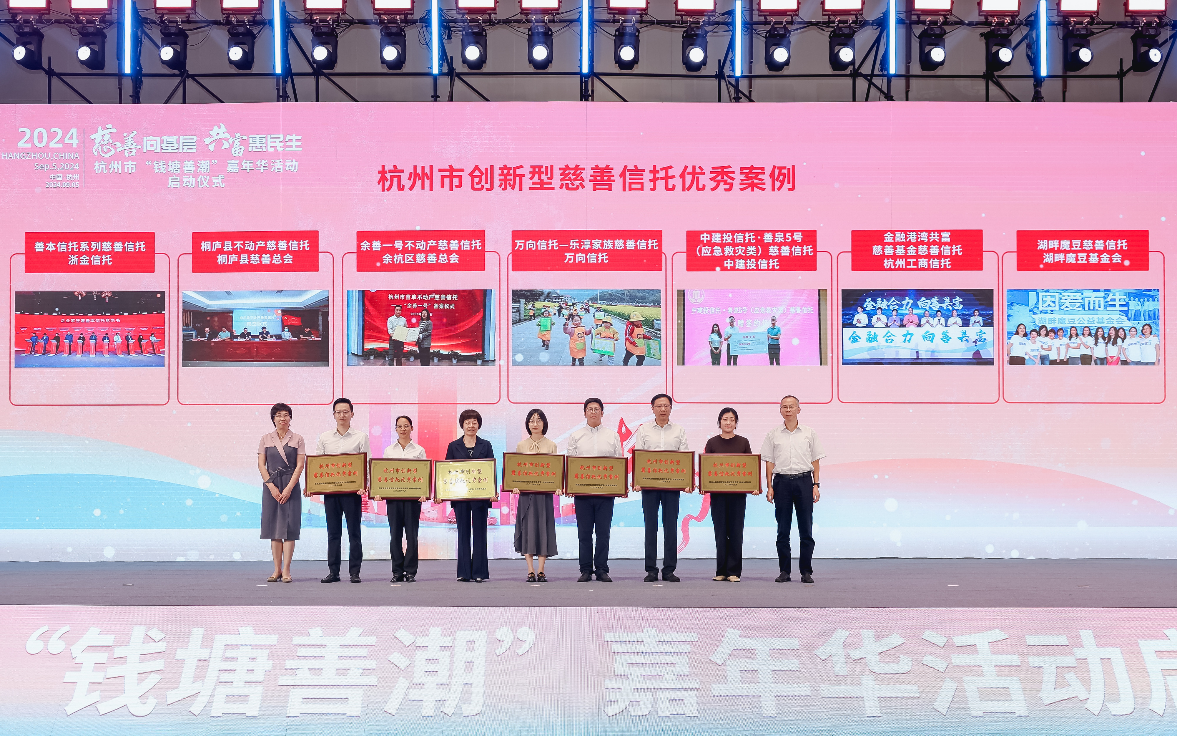2024年9月5日,在我國第九個“中華慈善日”來臨之際,由杭州市民政局、杭州市慈善總會主辦的“2024杭州市錢塘善潮嘉年華活動”啟動儀式在杭舉行, 中共杭州市委常委、杭州市人民政府黨組成員、副市長方毅應(yīng)邀出席本次活動。在啟動儀式上,國家金融監(jiān)督管理總局浙江監(jiān)管局黨委委員、副局長王軍和浙江省民政廳黨組成員、副廳長兼浙江省紅十字會副會長佘新荷為浙金信托頒發(fā)獲評的“2024年杭州市創(chuàng)新型慈善信托優(yōu)秀案例”。