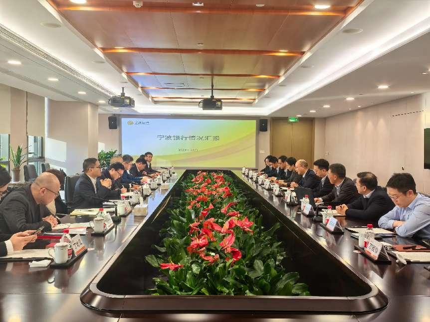 12月16日下午,省國貿(mào)集團總經(jīng)理、黨委副書記楊正宏,副總經(jīng)理、黨委委員陳飛一行赴寧波銀行拜訪交流,浙金信托董事長、黨委書記徐曉東攜相關(guān)領(lǐng)導同事陪同。寧波銀行行長莊靈君,私人銀行部、公司銀行部、投資銀行部、國際業(yè)務部部、寧銀理財?shù)炔块T領(lǐng)導熱情接待。